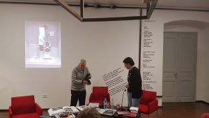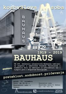 V petek, 15. novembra 2019, ob 18.00 smo obeležili 100. obletnico ustanovitve Bauhausa. V Kosovelovi sobi v Sežani je umetnik Frankom Vecchietom pripovedoval o znameniti šoli za umetnost in arhitekturo ter o njegovi poti z Avgustom Černigojem.
